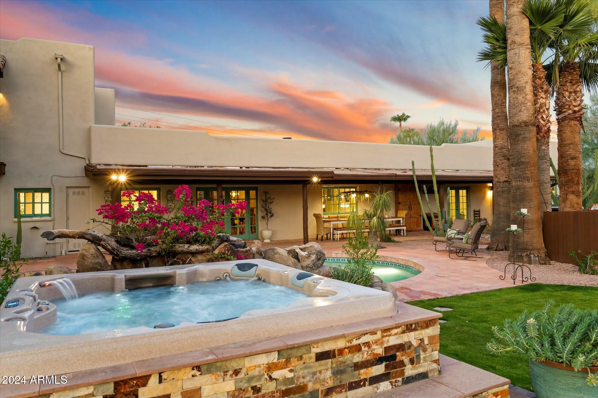 This property also offers practical features such as a full-size RV gate with electrical hook-up and parking, a tack/feed barn (currently used as a workshop) and a riding corral with direct access to bridal paths that lead to nearby Mescal Horse Park with automated sprinkler and lighting systems in arena. An additional storage area/workshop is located in the garage for added convenience. Game room is the 3rd/4th tandem garage wh can be converted back. Located in close proximity to top-rated Scottsdale Unified Schools, shopping and dining, this home offers the perfect blend of luxury, functionality, and family-friendly living. Whether you're looking for a place to entertain or a sanctuary to call home, this estate truly has it all!
