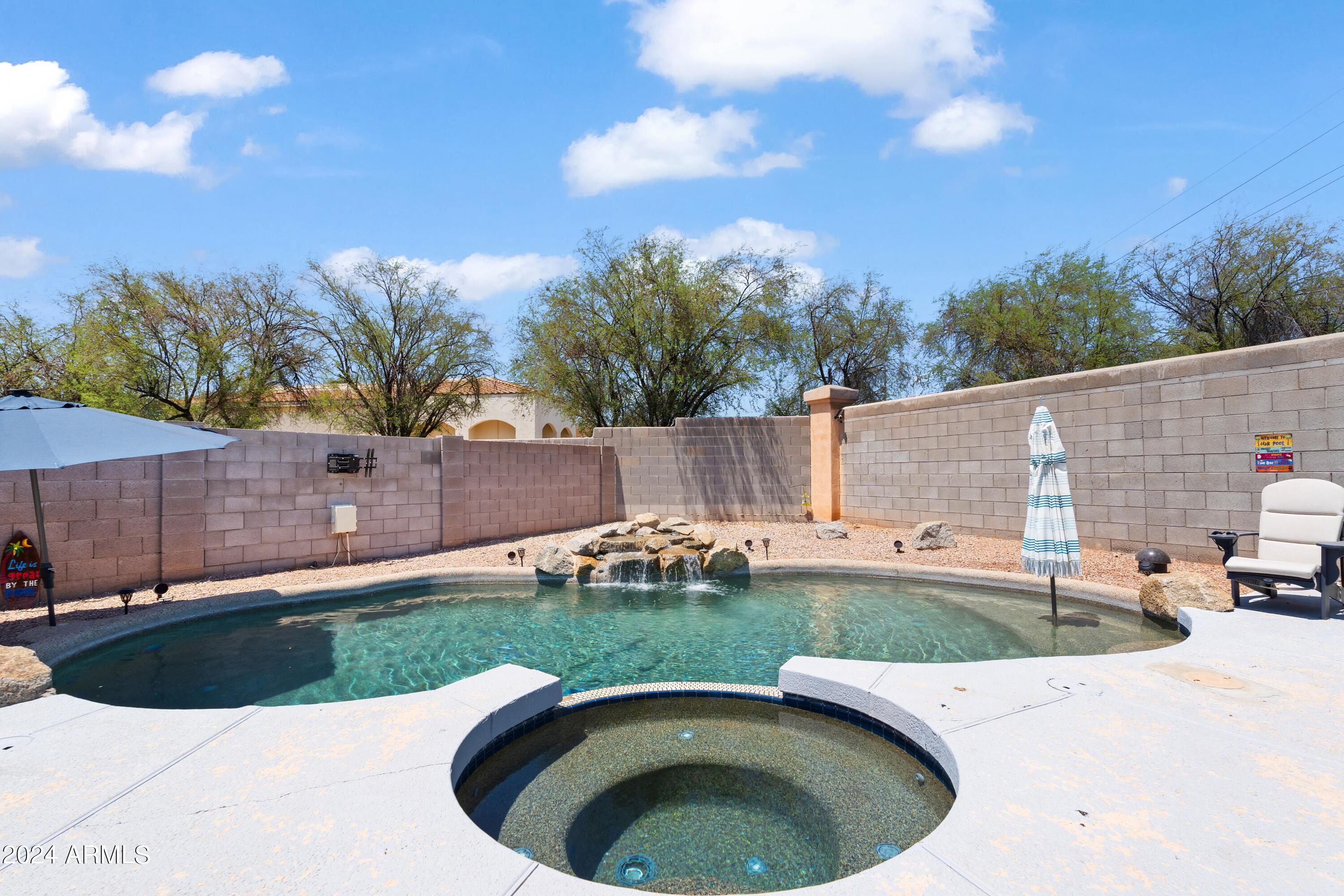 Step into the backyard oasis, a true haven for entertainment and relaxation. A stunning pool, spa, and water feature with a new pump & remote create an ideal setting for hosting unforgettable gatherings. Embrace the vibrant energy of this beautiful home where every day invites you to live life to the fullest.