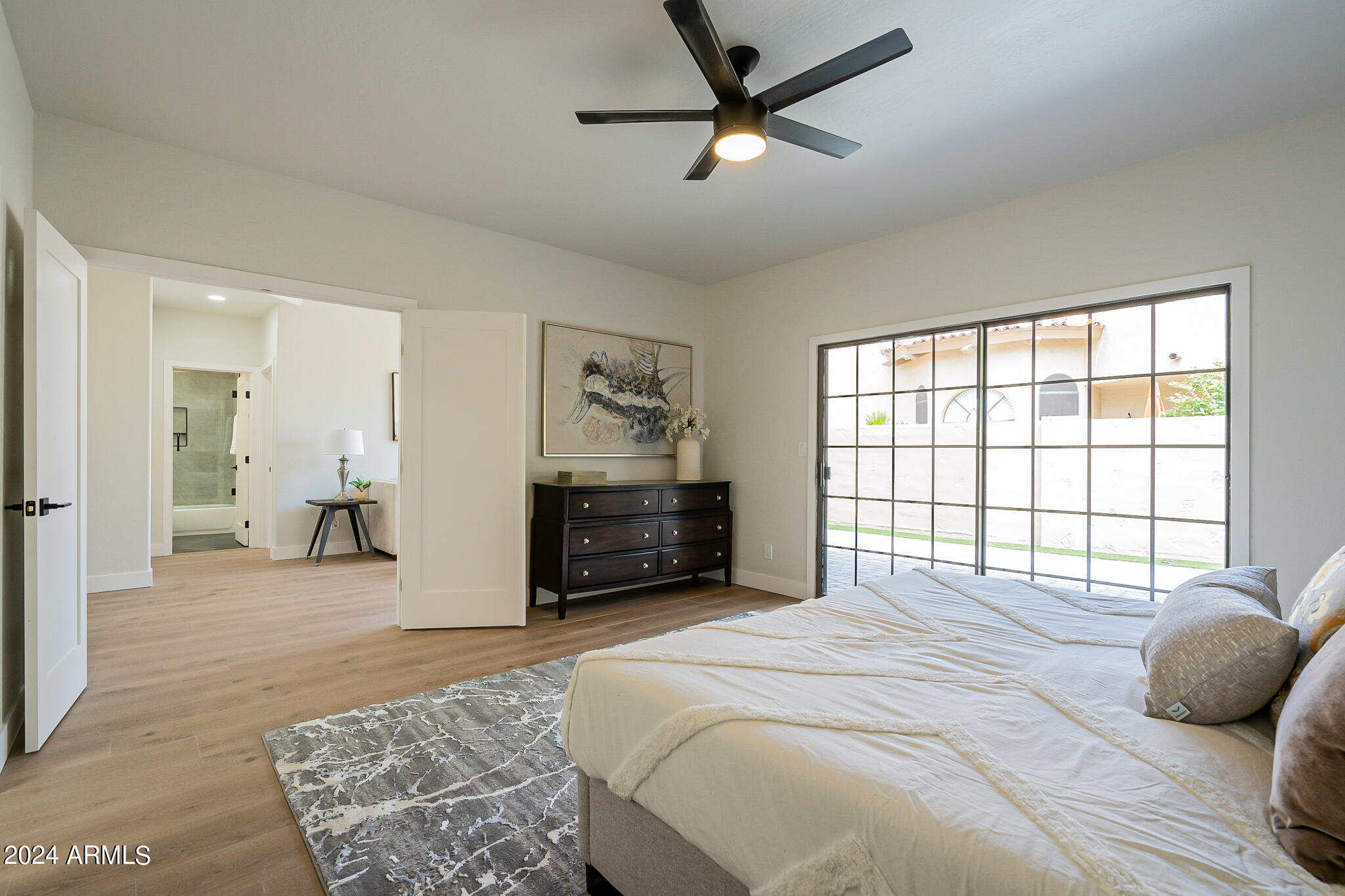 This newly remodeled home showcases modernity at every turn. From the sleek tile flooring throughout to the completely revamped bathrooms featuring updated white shaker vanities, elegant porcelain tile, and custom glass shower doors. Open the large sliding doors to step into your own private desert oasis, complete with beautiful pavers and new synthetic grass inserts.